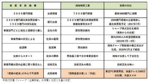 その答えを探るべく、シャープが危機的状況にあった当時、買収に手を挙げた鴻海と産業革新機構が提示した支援案を整理してみた(図1)。