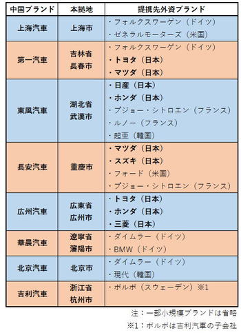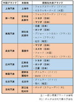 変わって下の表は、中国ブランド側からみた外資ブランドの提携先をまとめたものです。