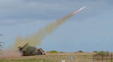 SINKEXで米陸軍がノルウェイ製地対艦ミサイルNSMを発射した瞬間(写真:国防総省)