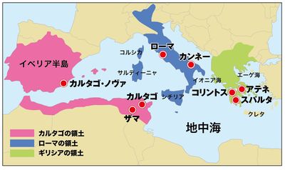 当時カルタゴは、シチリア島の西半分を支配していました。そのことにより、イタリア半島を統一して西地中海の新興勢力として台頭してきたローマと、西地中海の覇権をめぐって直接対決することになってしまいます。これがポエニ戦争(前264〜前146年)です。これは、帝国主義的に領土を拡大していた2国間の避けられない争いでした。
