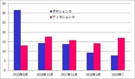 しかし、ドンバス内戦と経済危機が長期化するなか、ティモシェンコは有権者の不満を吸収して支持率を回復、今日、3度目の大統領選出馬を表明するに至っている。