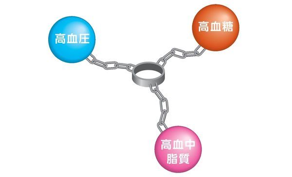いずれも必須栄養素だが、摂り過ぎによって高血圧、高血糖、高血中脂質の血管リスクを引き起こす原因にも。さらに、3つの血管リスクのうちどれか1つが悪化すると、ほかの2つも悪化する可能性のある「トリプルリスク」をはらんでいる。