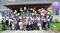 高畠町で行われた熱中小学校の第1回卒業式。卒業生の1人、山田賢一さん(右)の記念Tシャツにお祝いの言葉を書く寒河江信町長。