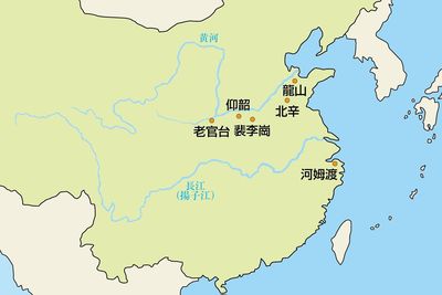 他にも、前6000頃〜前3000頃に、華北の黄河中流域で栄えた老官台(ろうかんだい)文化、前5300年頃〜前4100年頃、黄河下流域で興った北辛(ほくしん)文化などが知られていますが、有名なのは、前5000頃〜前3000頃に黄河中流全域に出現した仰韶(やんしゃお)文化でしょう。また、前3000年頃〜前2000年頃には、龍山(ろんしゃん)文化が誕生します。いずれも新石器時代の文化で、原始的な農業が行われていたことが知られています。