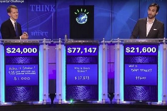 米国のクイズ番組「ジョパディ!」でクイズ王と対戦したIBM Watson(YouTubeより)
