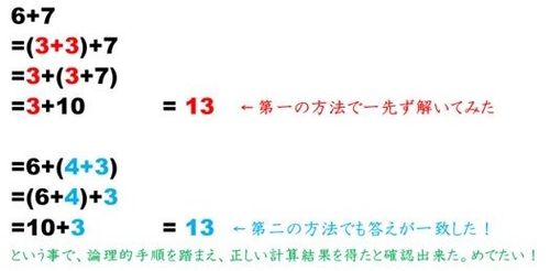 私は「さくらんぼ計算」を、理想的には、最初から「さくらんぼ検算」として使用することで、1年生の1学期から数学感覚をつけさせる、恰好の教材になるように思います。