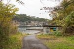 トンネルを抜けて、一呼吸置く。前の晩に雨が降ったせいで空気が湿気をおびているが、不思議とじめついた感じはしない。少し歩くと、鮫ヶ浦の入り江が見えてくる。トンネル入り口のうっそうとした深い緑とはうって変わり、黄色と黄緑の紅葉に溶け込むように郵便局が建っていた。