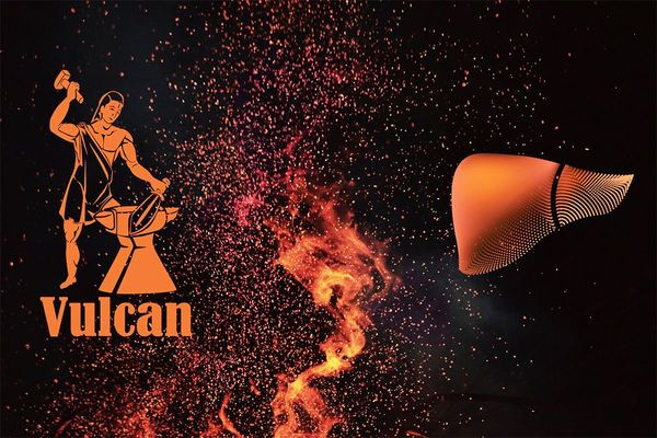腹腔の右上にある大きな臓器「肝臓」は、多能なエンジニアのような働きをする。アイコンは鍛冶の神ヴァルカン。