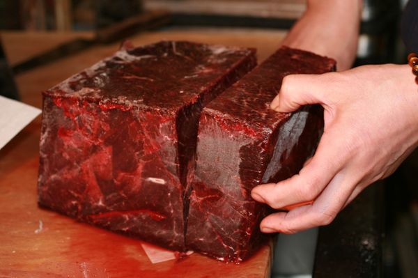 ミンククジラのブロック。商業捕鯨が再開されれば、鯨肉と接する機会が増えるかもしれない。