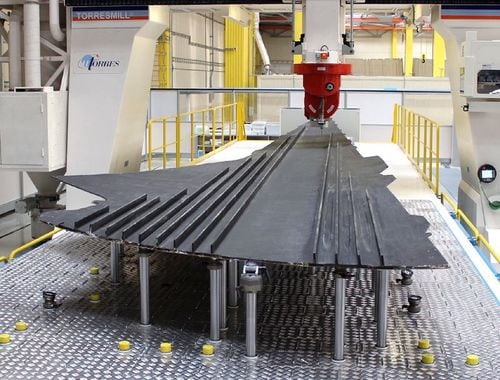 アエロコンポジット社製主翼の外板 炭素繊維複合材で作られているため黒い。米国旧サイテック社の材料を使用(出所:イルクート社)