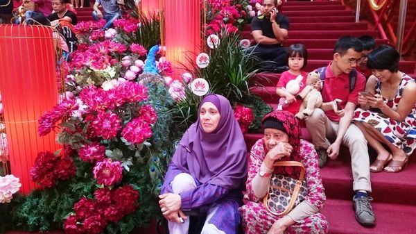 世界最大のイスラム国家、インドネシアは、実は世界最大の”華人国家”。春節のアトラクションを観劇するムスリム。華人とともに旧正月を祝う(筆者撮影)