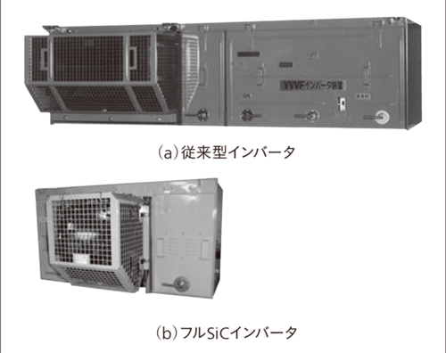 これに対し、SiCを用いたインバーターは冷却装置を大幅に省くことができ、小型化が可能となる。