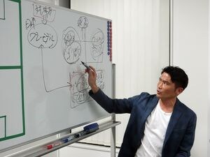 岩政大樹。元日本代表、鹿島アントラーズでは3連覇を経験。現在は解説者として活躍。「PITCH LEVELラボ」などサッカーを語り合う場所を作るなど精力的に活動している(写真はPITCH LEVELラボの際の岩政氏)システムがどう、戦術がどう、という目に見える事象、現象でサッカーを捉えるのではなく、選手たちのプレーの一つ一つの判断がつなぎ合わされてチームの全体像になる。そんなサッカーの描き方をされているのではないか。勝手にそう思いました。いつか、必ずそれを解き明かしにいきたいと思います。