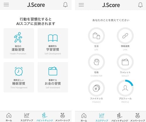 そして、海外のスコアリングサービスとの違いで最も大きな特徴なのが、アプリ版にのみ実装された「ハビットチェンジ」。ここでは「毎日の運動習慣」「継続的な学習習慣」「規則正しい睡眠習慣」「意識するお金の習慣」といったトピックが並び、「1日8000歩を歩く」「アプリ内に積読された推薦図書を読む」「規則正しい生活を実践する」「支出内訳と自己投資金額を記録する」……といった“ハビットチェンジ”(習慣化)でスコアが可変するというものだ。