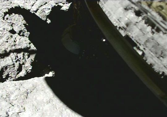 リュウグウの不思議は続く。これは別のカメラがとらえた、はやぶさ2着陸後の画像だ。