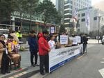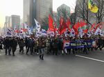 3・1独立運動記念日の日本大使館前の様子。反文在寅デモに比べ明らかに人が少ない。(筆者撮影)