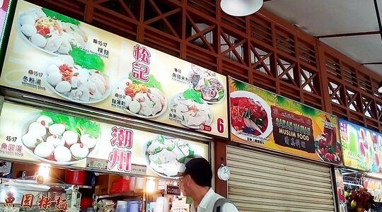 シンガポールのホーカーズ(フードコート)には「魚頭米粉」など魚の頭を具材にした料理のメニューが掲げられている。「ニュートン・フードセンター」にて。