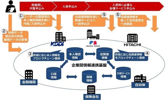 第1弾として4月から5月までの2カ月間、賃貸不動産の内覧申し込みから入居までに発生する業務処理を想定した検証を行う。本人確認や申し込みなどの情報をブロックチェーンに書き込み、積水ハウスとKDDIとの間で連携することで、引っ越しにかかわるさまざまな手続きを簡略化できるかどうかを確かめる。
