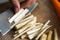 ゴボウ。栽培がなされ、またさまざまな料理に使われる点で日本特有とされる。