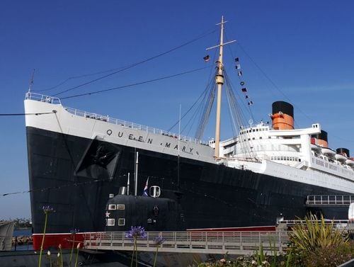 クイーンメリー ロサンゼルス近郊のロングビーチに保存され、ホテルとして用いられている。近くで見ると、そびえ立つ巨大建造物のような迫力がある。