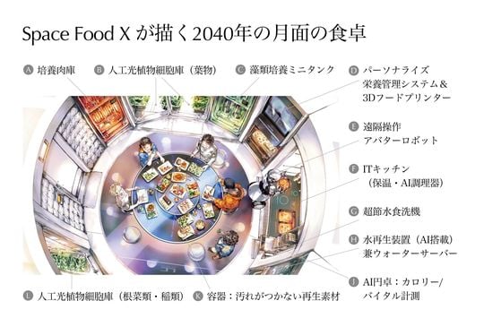 “月産月消”を実現するには、さまざまなテクノロジーが必須となる。月面ディナーが並ぶ食卓は、こんな機器類が取り囲んでいるかもしれない。