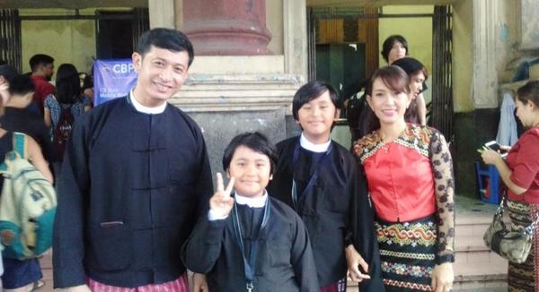一家を演じた4人。2018年9月、ミャンマー・ヤンゴンで開かれた映画祭