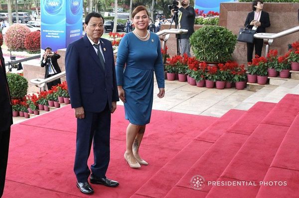 フィリピンのドゥテルテ大統領と娘のサラ氏(2018年4月、ボアオ・アジアフォーラム、中国・海南島で)=ABS-CBN News