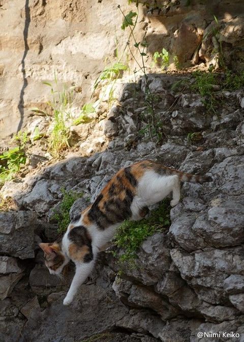町の高低差を利用して、猫たちは思い思いに散歩したり、移動したりします。
