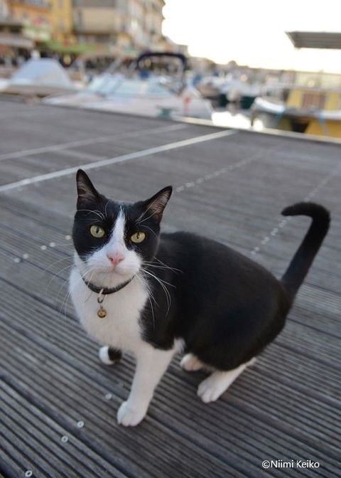 こんにちは。世界を旅する犬猫写真家、新美敬子です。早朝、港に行くと白黒猫が日の出を待っていて、港を案内してくれました。