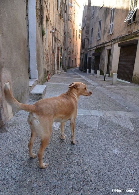 この犬も自分のテリトリーを案内してくれました。途中で写真を撮ろうとすると、いっしょに立ち止まり、気遣いを見せてくれました。