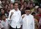 5月21日、インドネシアの大統領選挙で勝利を宣言する、現職のジョコ・ウィドド氏(左)と、イスラーム組織ナフダトゥル・ウラマー(NU)の指導者マアルフ・アミン氏(写真:AP/アフロ)