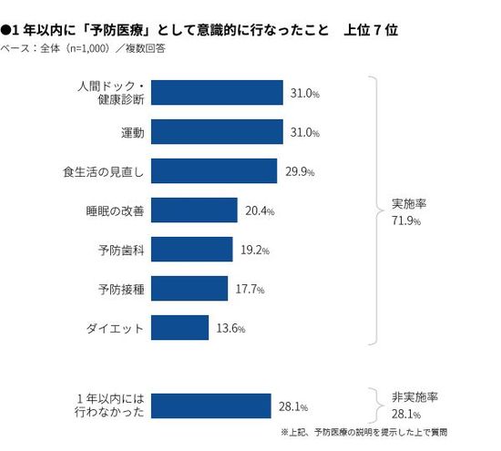 1年以内に「予防医療」として意識的に行なったこと(画像はマクロミルのプレスリリースより引用)