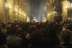 3月13日日曜日、午後7時半。パリ・ノートルダム寺院、香の立ち込める堂宇に響く鐘の音を格別の思いで受け止めた。寺院に居並んだ人の数は1000人あまり。その最前列には、在仏日本大使の姿。