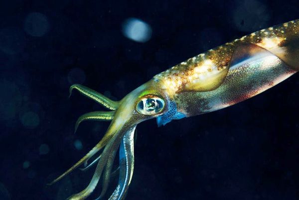 イカの眼は、見た目では私たち人間の眼に近いように感じられる。写真はアオリイカ。