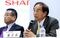 6月11日、シャープの事業方針説明会に登場した会長兼社長の戴正呉氏(右)。左は石田佳久副社長(写真:つのだよしお/アフロ)