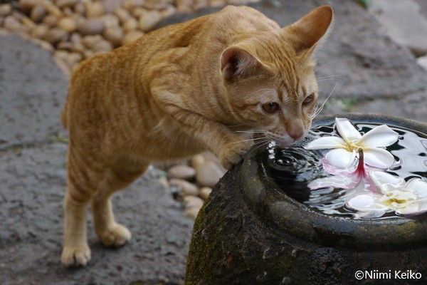 猫が優雅に水を飲む姿を見ると、気持ちが安らかになっていきます。