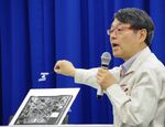 はやぶさ2の動きを説明する久保田孝JAXA宇宙科学研究所研究総主幹。