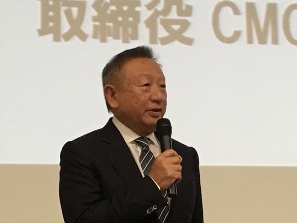会見するアスクルの岩田彰一郎社長(筆者撮影)