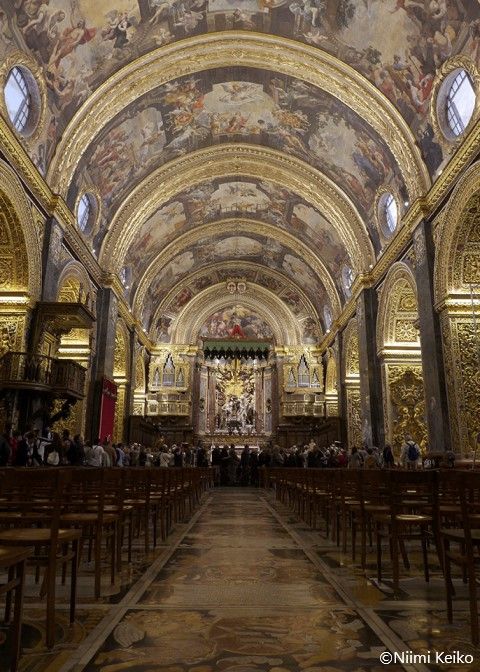 聖ヨハネ大聖堂の堂内は、絢爛豪華さの極みと称えられるほど、優美な装飾が施されています。小礼拝堂に展示されている門外不出のカラヴァッジオ作「洗礼者ヨハネの斬首」は、必見です。