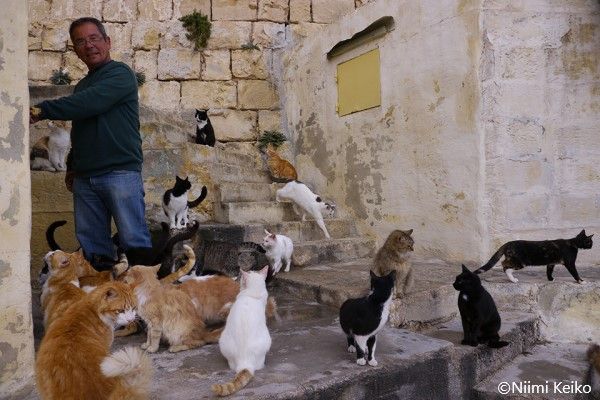 首都バレッタの海岸にある「猫村」は、かつて漁師だった人たちの小さな番屋が残る区域です。リタイアした漁師さんたちが、ここで暮らす猫たちの面倒を見ています。