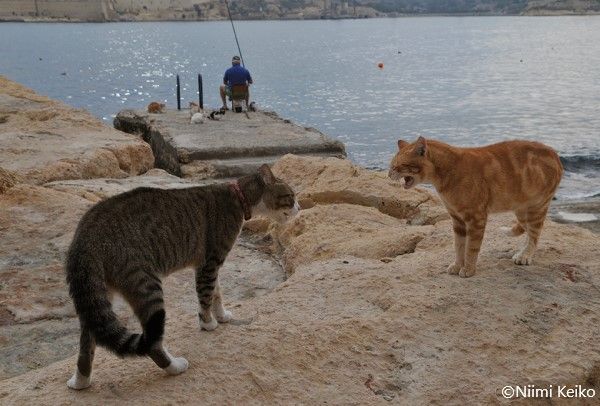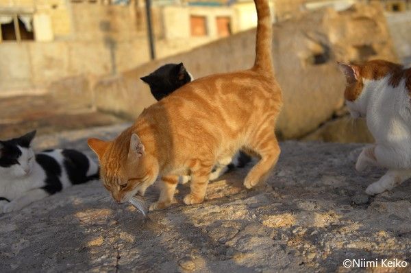 釣れた魚は順番に猫たちへ。ちゃっかりした猫だけが魚にありつくことのないよう、おじさんはどの猫が食べたかを覚えていて、おとなしい猫にもちゃんと魚を与えていました。