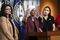 トランプ大統領による民主党の移民系女性議員に対する「国へ帰れ」発言に抗議する議員たち。左からラシダ・トレイブ下院議員、イルハン・オマル下院議員、アレクサンドリア・オカシオ・コルテス下院議員(写真:AP/アフロ)