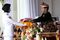 8月17日、ジャカルタにあるムルデカ宮殿で開かれた独立記念日の式典で、旗手に国旗を手渡すジョコ・ウィドド大統領。(写真:AP/アフロ)