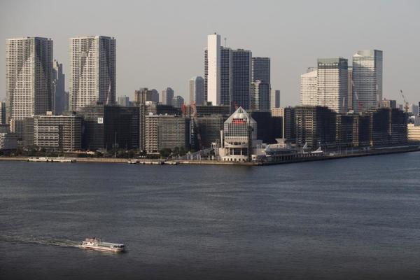 2020年オリンピックの選手村建設が進む東京のベイエリア(2019年6月6日、写真:AP/アフロ)