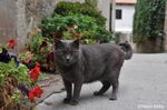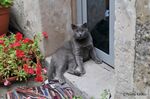 買い物帰りのお母さん(飼い主)を待っていた猫です。お母さんの足音を聞きつけ、迎えに出てきました。お母さんは、「自慢の猫なのよ」と頭を撫でていました。