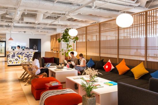 都内の拠点の一つWeWork 城山トラストタワー。開放的なコミュニティスペースは、働く場所の概念を覆すものだ ©︎WeWork Japan