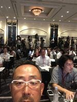 「退任会見」のスペシャルゲスト、ソフトバンクグループ会長兼社長の孫正義氏(左、筆者撮影)