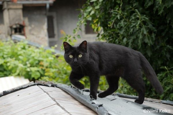 フェリーで真っ黒な犬と会いましたが、この町で最初に出会った猫も、真っ黒でした。