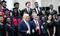 エバンジェリカルズのジェリー・ファルウェル師と写真に収まるトランプ大統領(バージニア州リンチバーグのリバティ大学で)