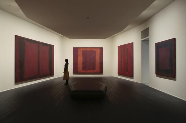 少し照明が落とされた部屋に、7点の大きな絵が鑑賞者を取り囲むように並べられている。絵はそれぞれ幅3~4m×高さ2m半ほどもある大作で、暗赤色の地に赤や黒、オレンジで門あるいは窓枠のようなものが描かれている。具象画ではなく抽象画なので、意味はよくわからない。実際にこの場にいたら、あなたはどんな印象を覚えるだろうか。想像を逞しくしてイメージしてもらいたい。